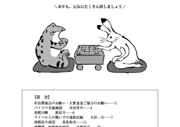 会報将棋ペン倶楽部 通信 第52号 目次将棋ペン倶楽部通信 第52号編集部1目次編集部1年会費振り込みのお願い事務局2事務局より・・・将棋ペンクラブ大賞基金に対するお願い事務局2第30回将棋ペンクラブ大賞贈呈式レポート圷麻紀3将棋ペンク...会報