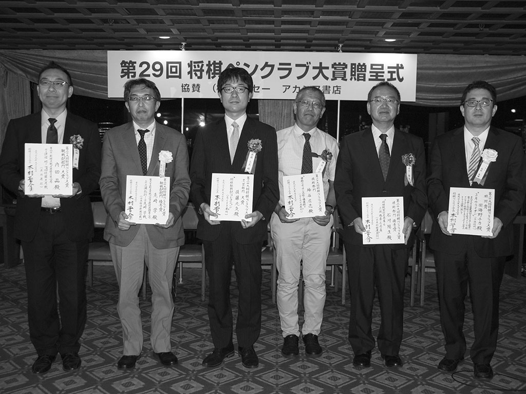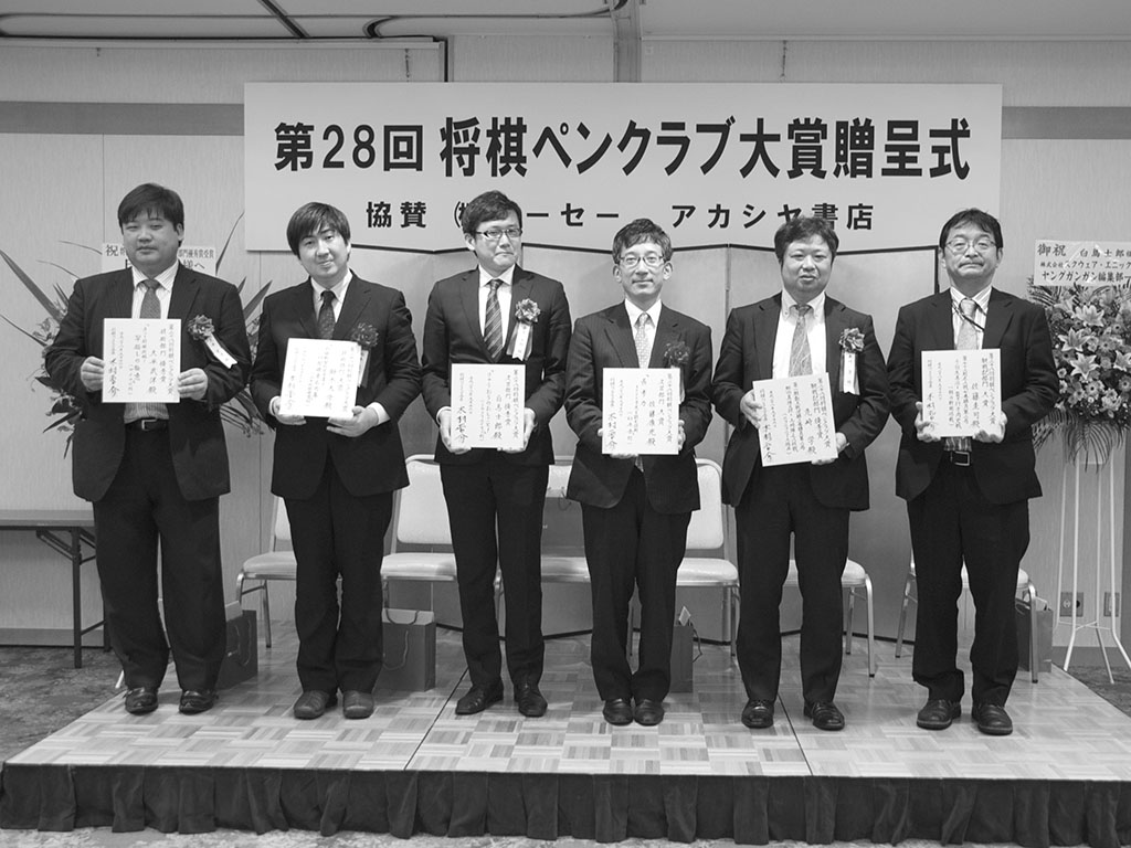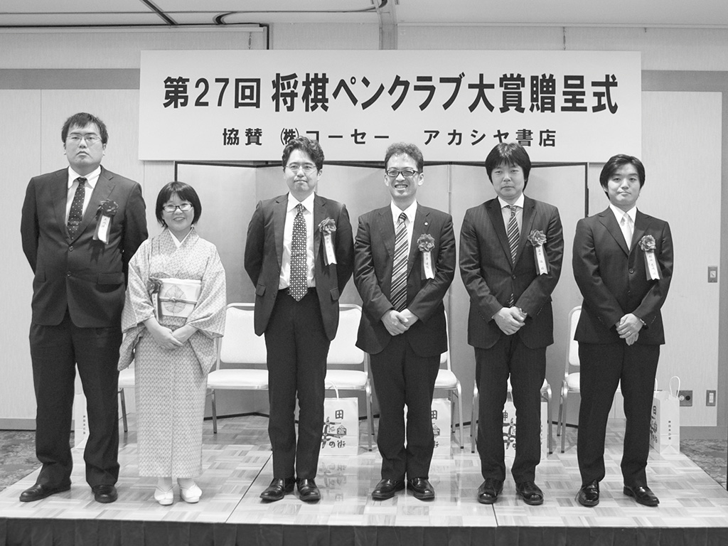 第28回将棋ペンクラブ大賞贈呈式の模様 X Facebook LINE コピー 2016年09月16日開催概要日時2016年9月16日(金)場所スクワール麹町将棋ペンクラブ大賞受賞者 第28回将棋ペンクラブ大賞[選考委員]木村晋介、西上心太、所司和晴観戦記部門大賞佐藤圭司「第73期名人戦七番勝負第2局」羽生善治-行方尚史(朝日新聞、15.5.14〜)優秀賞先崎学「第1期叡王戦決勝三番勝負第2局」郷田真隆-山...ギャラリー